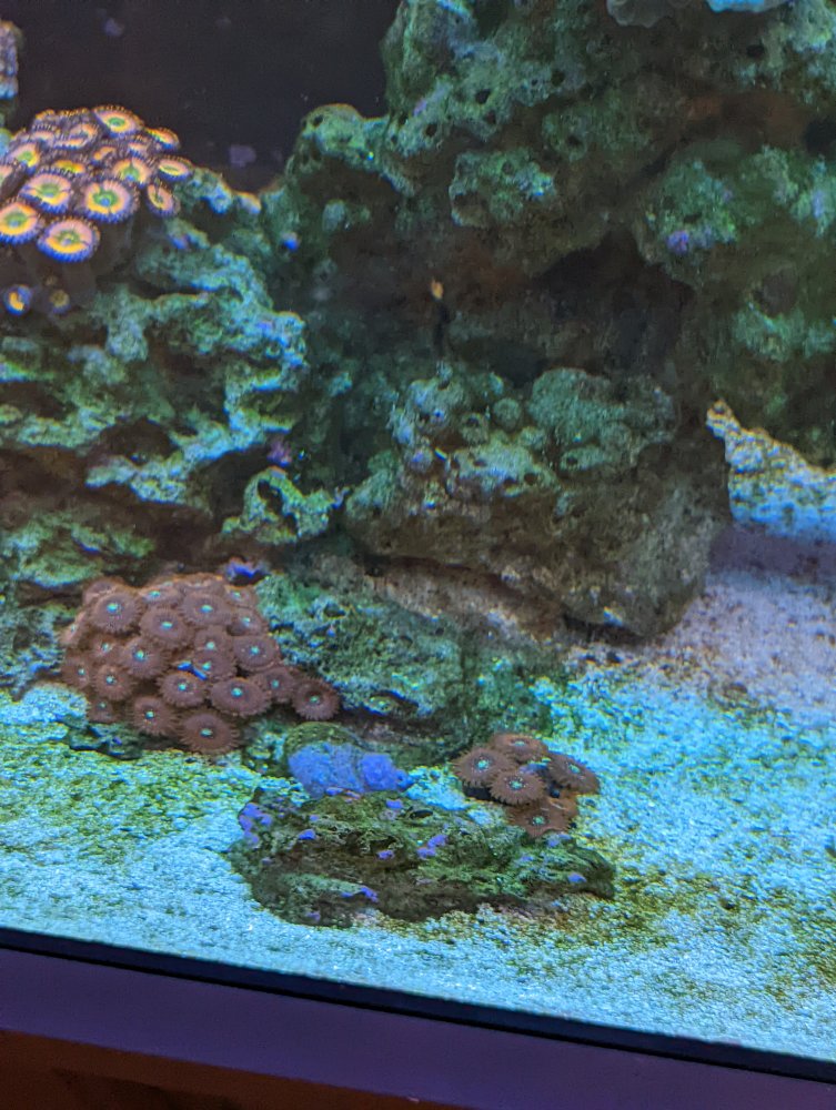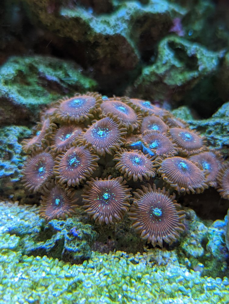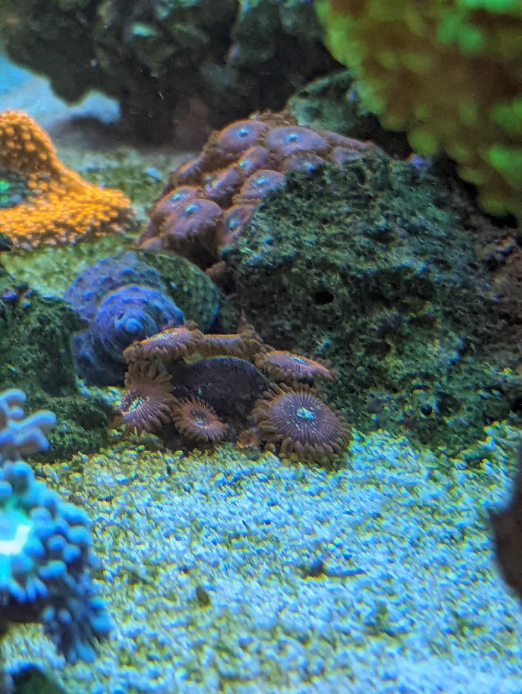 That works for me. I’ll make a frag for you with 7 polypsHere are some photos I just took, I don't know much about value of zoas but I would trade my small cluster (6 full polyps + 1 baby polyp) for the same ish number of purple monsters