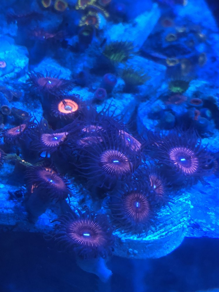 Nuclear death (1 polyp), purple death (2), unknown zoanthid (10-12) $30