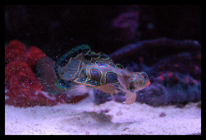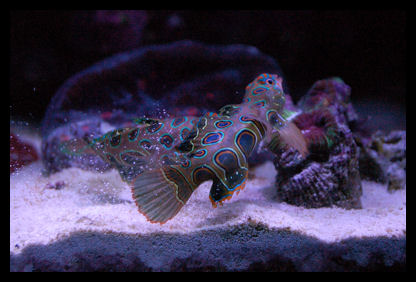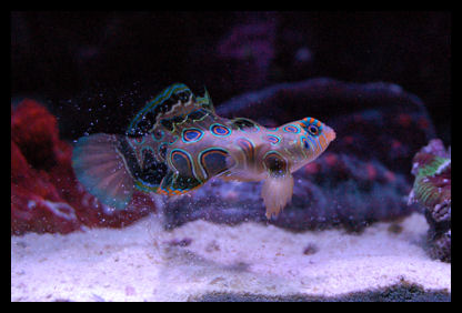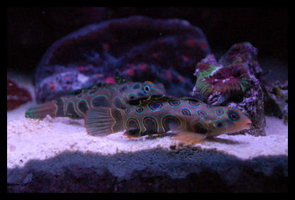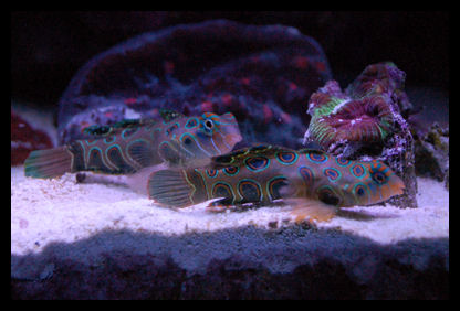 What type of behavior is to be expected when introducing a female spotted manderin into a tank with an established male? It appears the male is showboating his territory and picking at the female. How long will this last? He occasionally follows her around in this manner. I introduce her 1/2 hour ago, after being in the fuge for 2 weeks to fatten her up.
