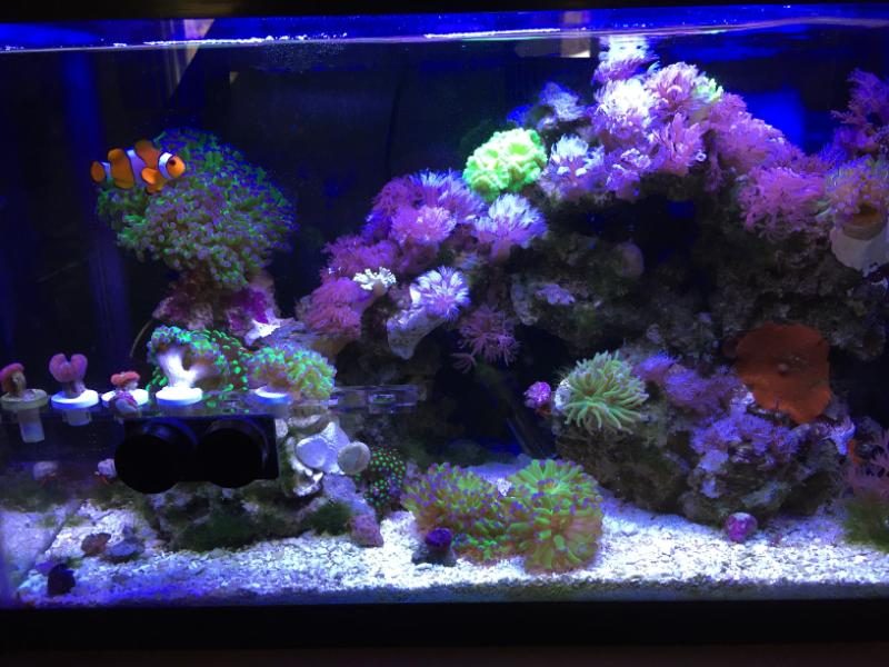 put this little guy together in August of 2020. Not what it used to be but it is what it is. Lost a bunch of zoas, couple Sps, and a mature green birds nest. That’s what happens in New England and make water in your basement. Then don’t pay attention the heater isn’t plugged in during winter and do a water change. Oops.