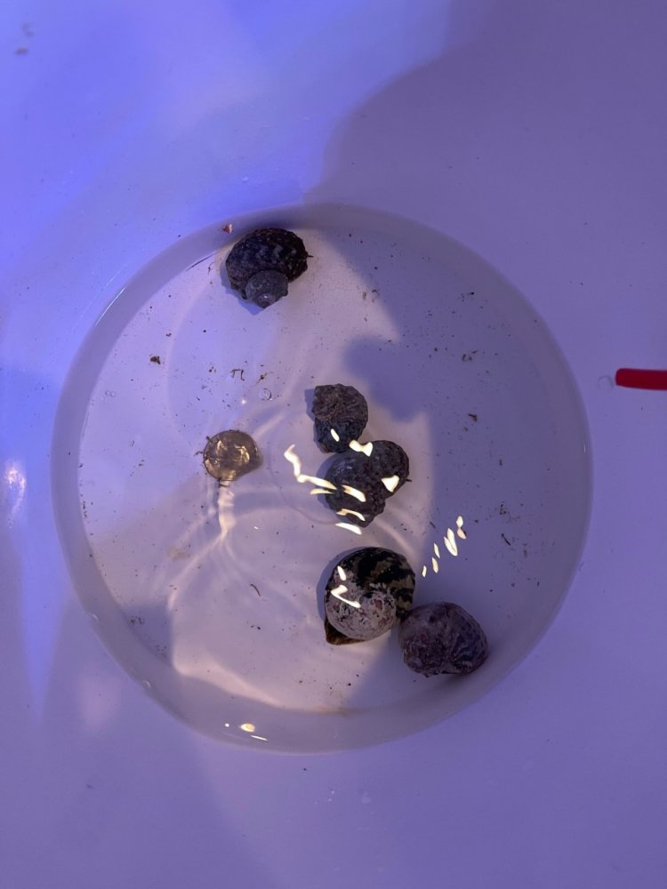Last week, I got a replacement order for Mexican Turbo Snails (5 pack) from Top Shelf Aquatics. They shipped it as a replacement from one of the damaged orders from last year. In the mean time, I had gotten other snails locally and I don't have algae issues anymore in my tank for these snails to eat. They hare good size, healthy, and fully acclimated. I have been feeding them seaweed since last week so that they don't starve in my tank. I have placed a quarter in a picture for size comparison.