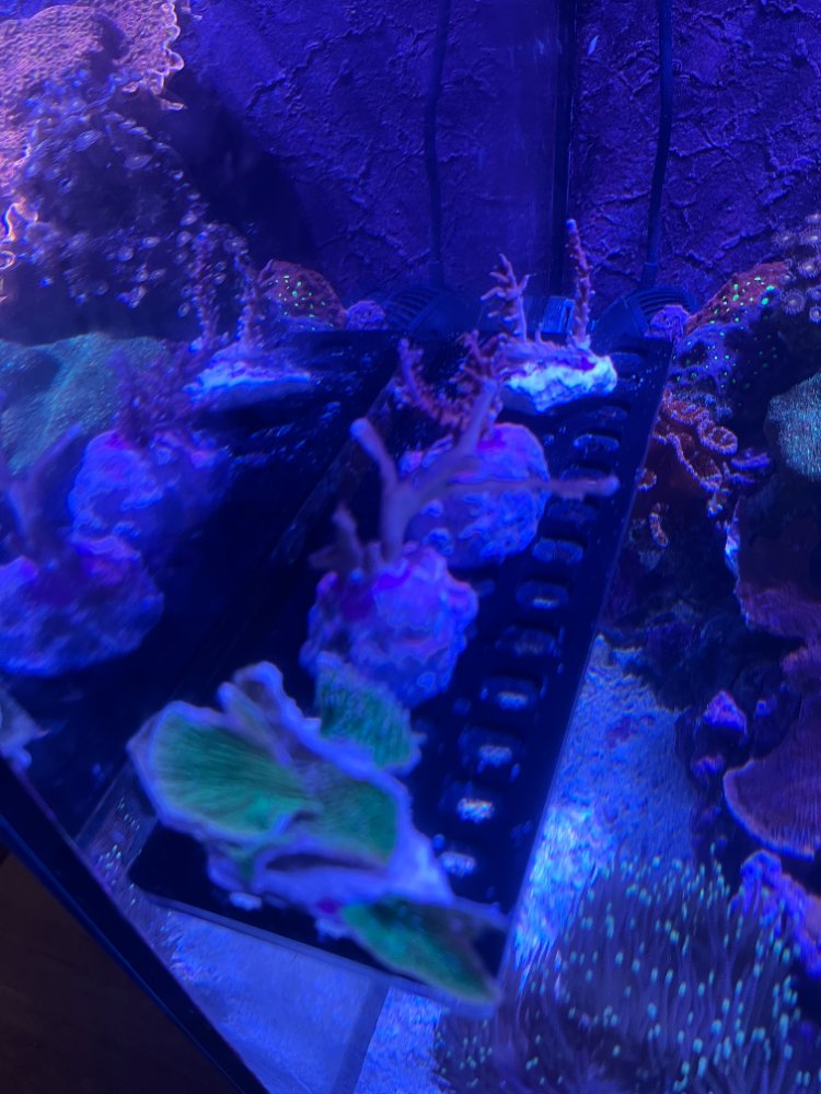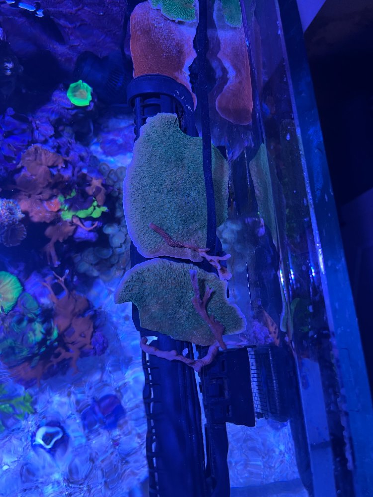 Thinning out my corals. Fresh frags of montis and red dragon. I mounted some with the goal of growing them out, but decided I'd just relocate them. Its too overgrown and shadows are adversely affecting some of the corals I want to keep. I've never had an infection in my 5-year mixed reef tank (but always dip before putting them in your tank--just one person's opinion).