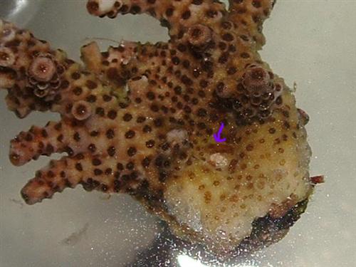 I think you guys are right (Moe and Brian) I've been searching with every search engine I know of, talk about redunce. It seems that they are one in the same or at least very simular. It would make sense too. The large one in todays pics was on an almost completely bleached coral that normaly has light colored flesh anyway. The smaller brownish ones were on a brownish fleshed milli.