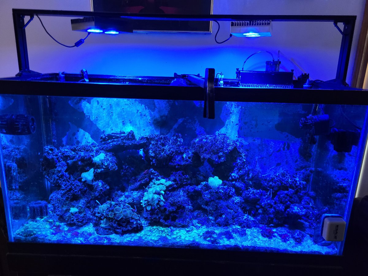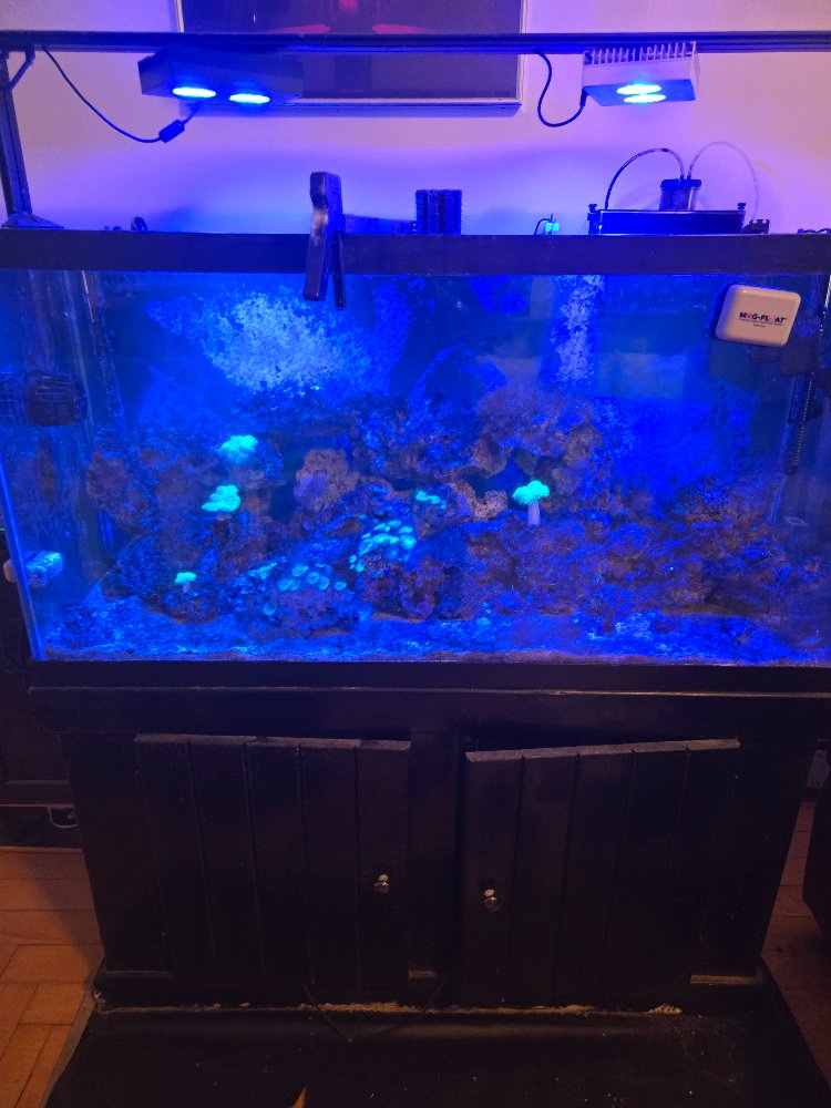 10 years 125 G Saltwater tank with stand with several corals and 55 lbs of live rocks, plus 2 Hydra 26 LED, one Vortech MP40 fan, Portable Refractometer, Aquatop 450 W Digital Heater (Brand new), 2 of 1 Gallon BRS Bulk GFO Granular Ferric Oxide from Bulk Reef Supply), Reagent Sea water Alkanility and free of: