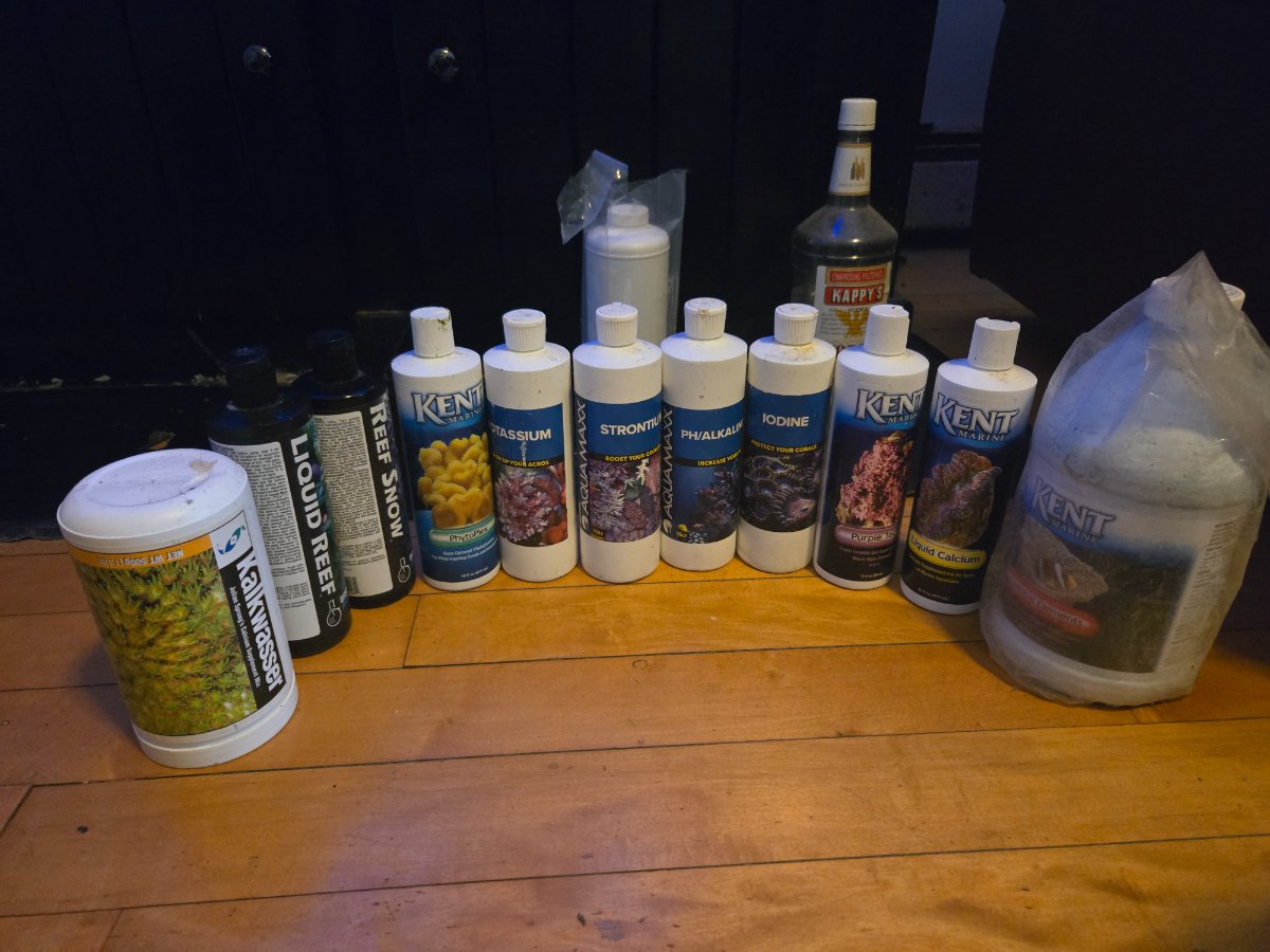 Liquid Reef, Reef phytoflex, Aquamax potasium, Aquamax Strotium,Aqumax Iodine, Kent purpleTech, Kent Tech M Magnesium, Kent Liquid Calcium, Kent Element Essential ( 64fl oz).