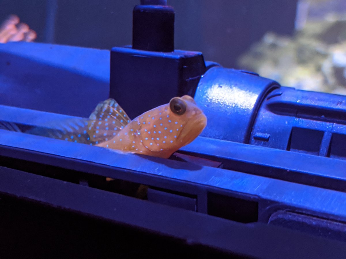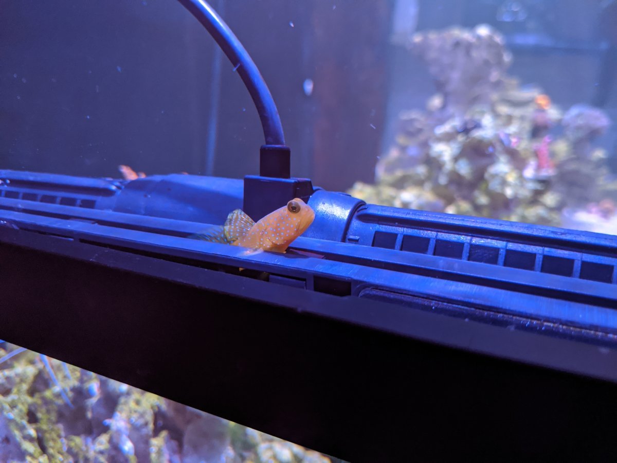 It also helped me realize that the Carpenters Wrasse was out earlier this morning. Took about two days but it was finally swimming out in the open. Even better, I saw it eating when I fed the tank!