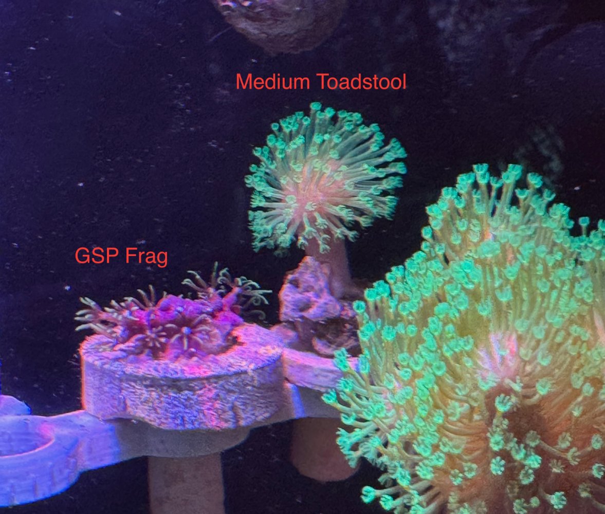 1x Small (medium) Toadstool - Neon Green on Rock on Frag Plug (diameter of a quarter)- $10