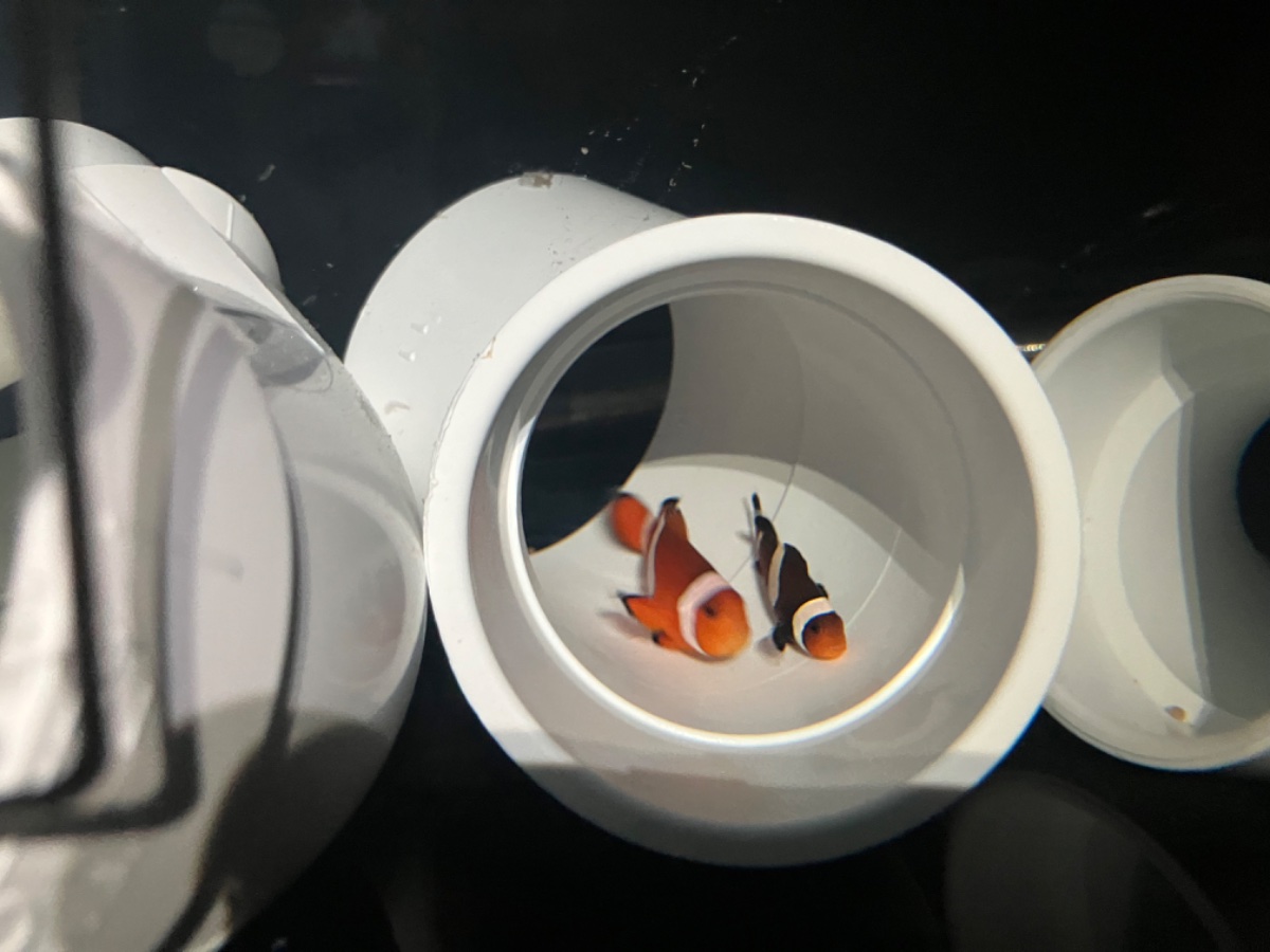 In a 10g quarantine are two clowns, watchman, 6line, and royal gramma. Have given prazi and did 4 tank transfers with two hydrogen peroxide baths.