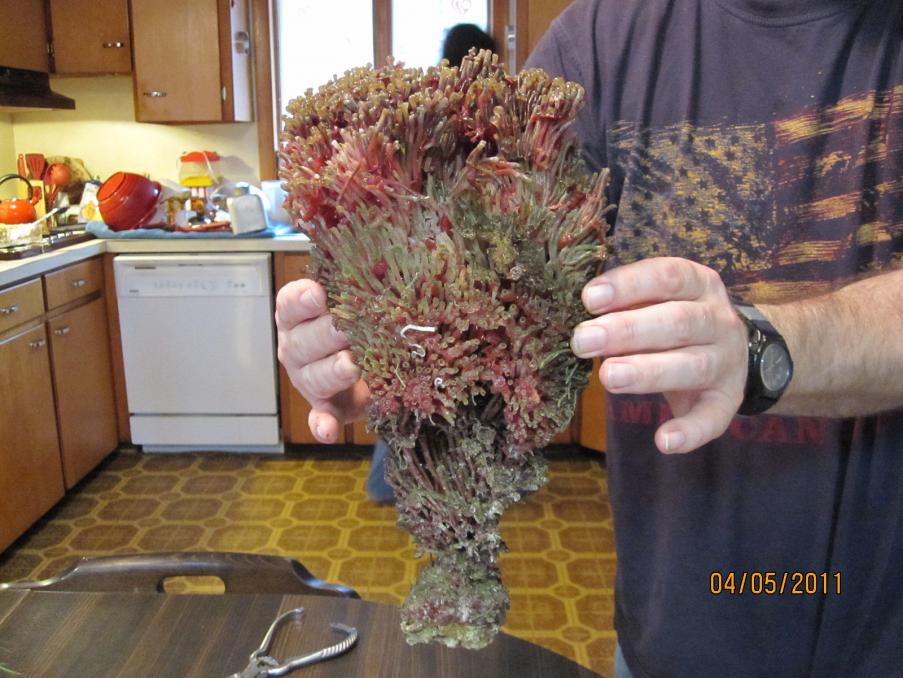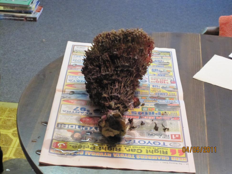 Those that have been to my house have seen the very tall (Tubipora musica)Pipe Organ coral I have.Well,decided to pull it out and trim the bottom off to square it up so I didn't have to lean it against the LR.It's been in my system now for pretty close to 3 years.