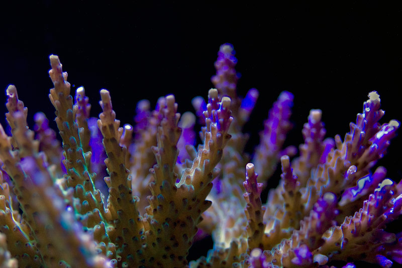 Ok went to Underwater World today and saw this monster Basketball size plus type of tri-color what a colony should look like. Greg did not mind breaking a piece for me I kind of felt bad the store was busy but he did. Sweet piece. So here is a picture taken through the glass not top down right when I put it in.