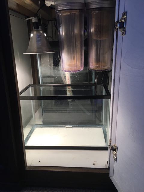 The tank will be kept under my stand next to my sump. The stand is pretty enclosed to help retain heat, so there will be no heater.