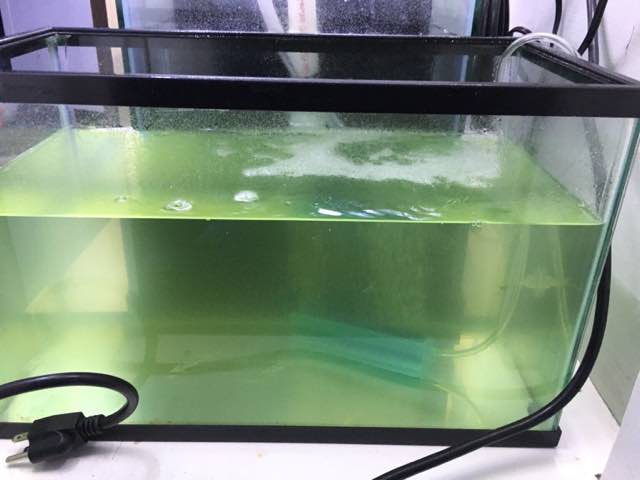 My QT tank has been empty for a few weeks and I kinda let it get out of hand as far as upkeep, and it's got some algae, pods, and dirty water. This is the water I am going to use to start the farm. I will seed the pod population via the air sponge from the QT.