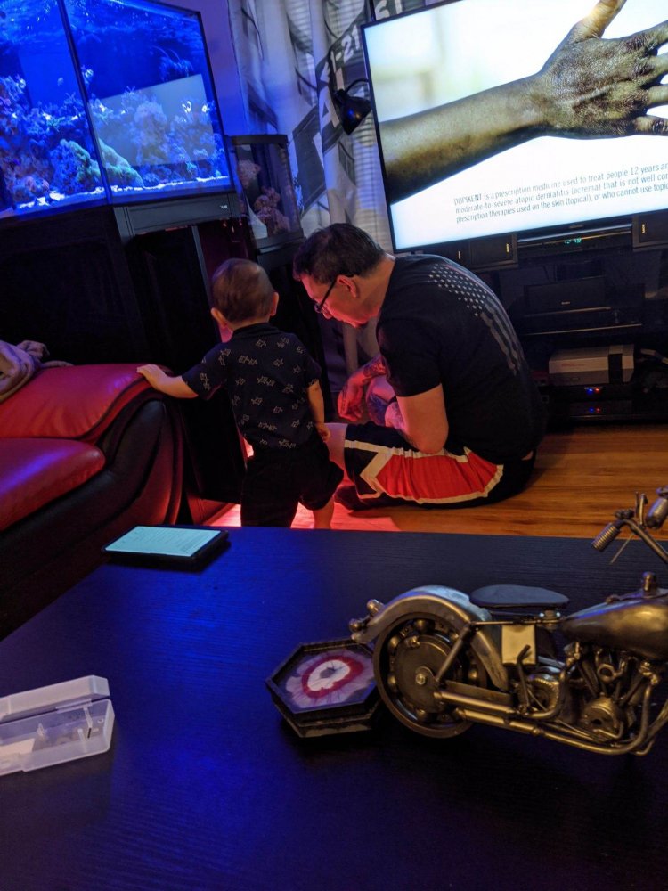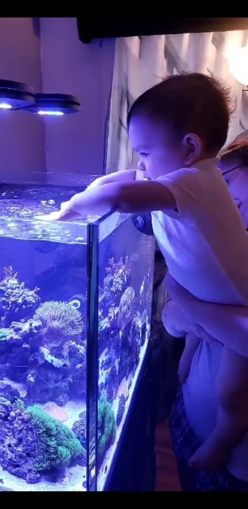 I may have to try letting my son do that on purpose! He has a tendency to climb up on an ottoman next to the tank and dip his hand in when he’s not supposed to. Love seeing I’m not the only reefer with a young one!