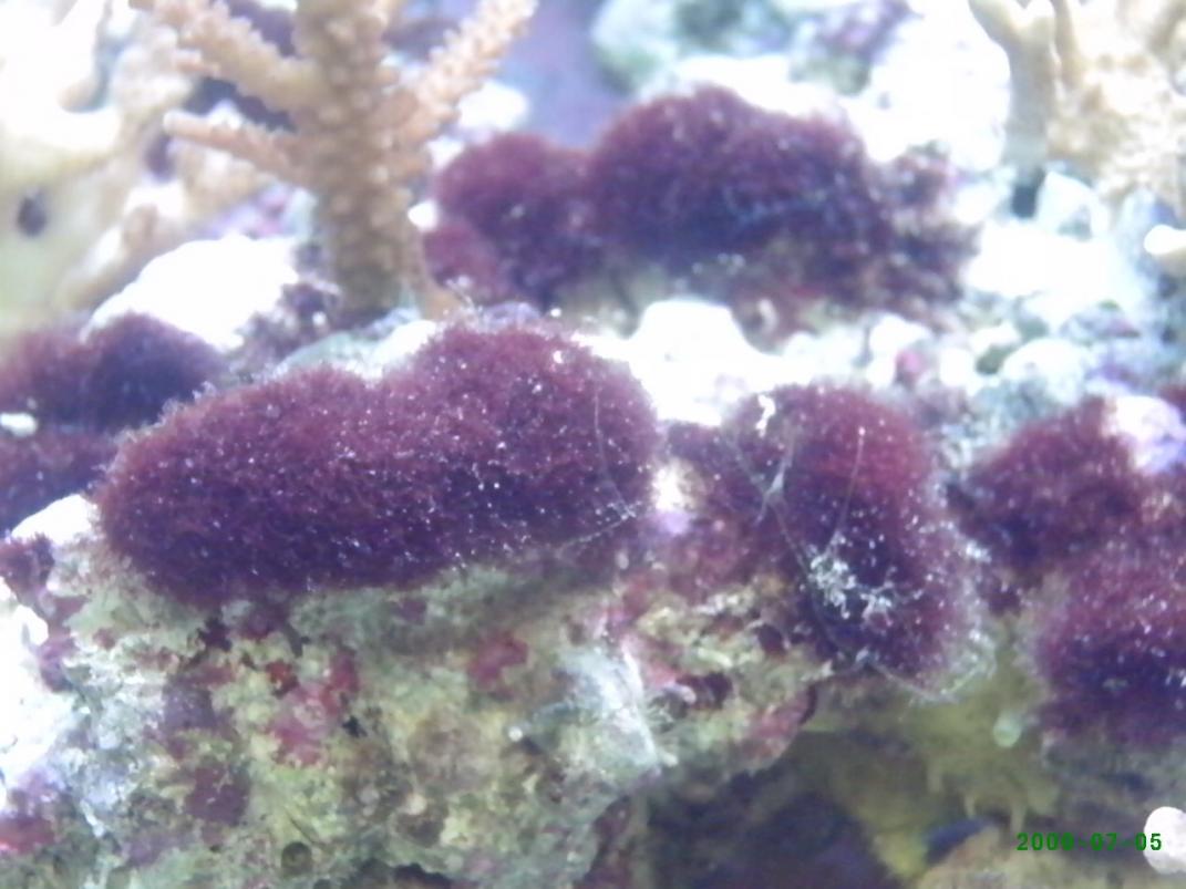 this stuff is nasty! it appears in patchs and it is real tough to pull off rock. actuly you can't just pull it off you need to scrap it off. i have had lights out for 4 days now. the little bit of green hair algae i had has almost all dyed but this red mat like stuff is going no where. it stays very short and like i said it's tough it don't move nothin i have seems to want to touch it inc. emerald crabs ,turbo snails, mexican hermits, scarlet hermits, blue leg hermits, or sea hare any idea's???