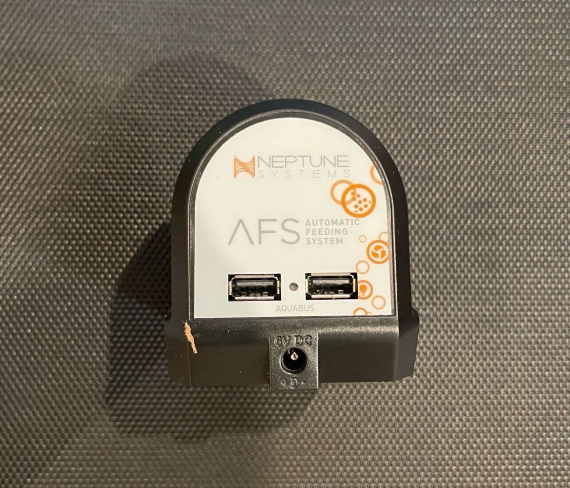 | Neptune System AFS Automatic Feeding System. Open box. Never used. I feed frozen food to my fish and never had to use it. Never installed it or used it, only opened the box. https://www.bulkreefsupply.com/automatic-feeding-system-neptune-systems.html Thanks. |