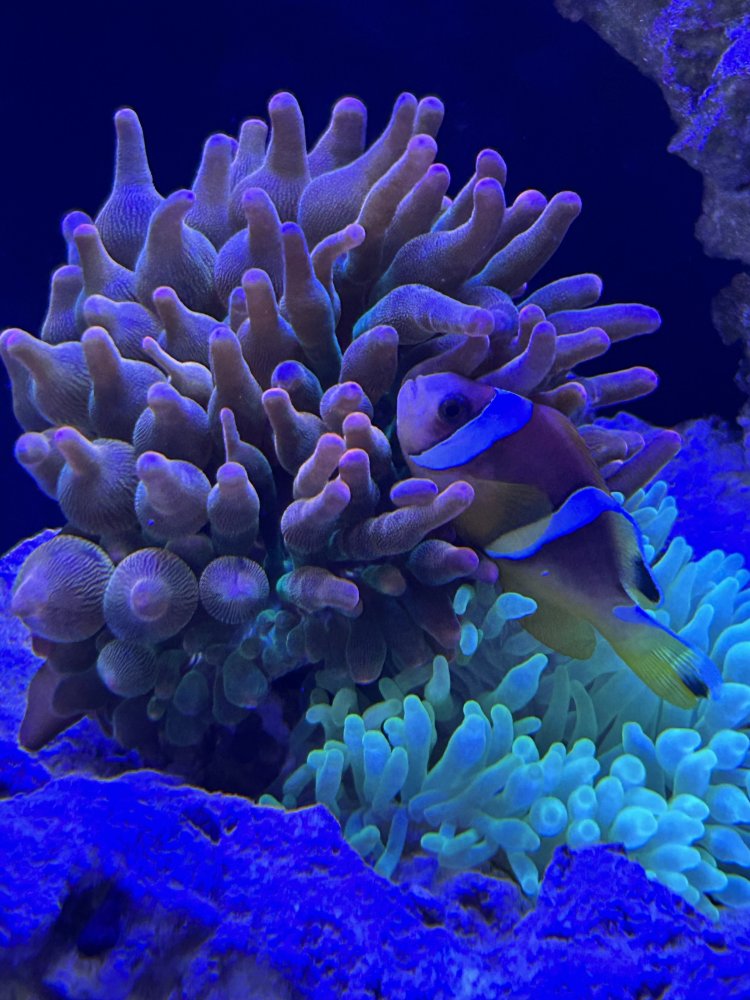 I've been on the fence for a while and finally pulled the trigger this week. In minutes the first one dove into the anemone, the second one is exploring. Pretty little fish with a 40B all to themselves. Not a lot of work happening here right now.