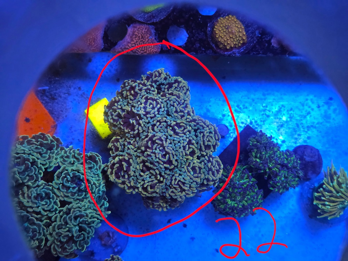 rainbow hammer most are 4 heads each a couple with 2 heads asking $40 per 4 head frag and $20 per 2 heads each frag also have a large colony with approximately 20 heads asking $100