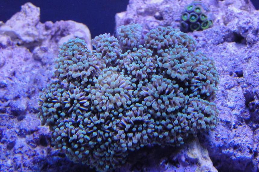 i now have a big colony of dragon eye zoas, and a SWEET, fast growing, bright, orange cap. and a long nose hawk that loves it. also a coral banded shrimp, that is well behaved, *for now*