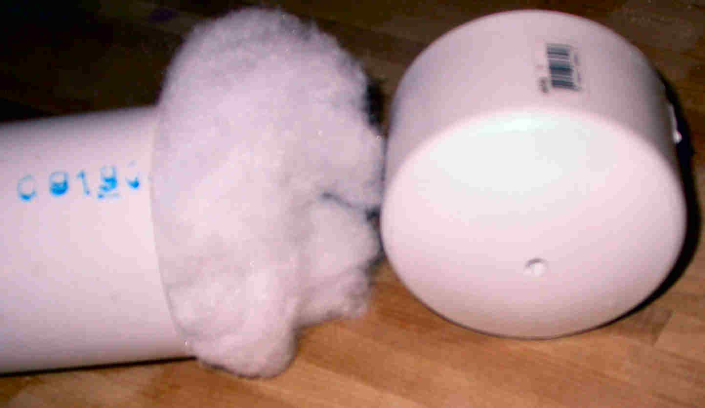 The top of the pipe is stuffed with poly and covered with a cap that has a 1/4" hole for the air to escape.