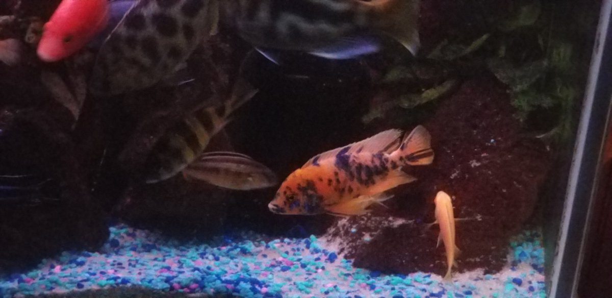 Just a few pics of the 180 (235 system) cichlid and 75 community. Substrate is always a mess as it seems like 1 set is always breeding. Have 3 females brooding now.