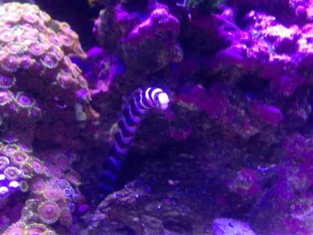 He is a harlequin eel or banded snake eel. Lots of people mistake them as zebra morays at first. Even where I bought him had him labeled as one. I had one years back that was almost 30 inches but had trouble keeping him fed. This guy eats like a champ though so I'm happy.