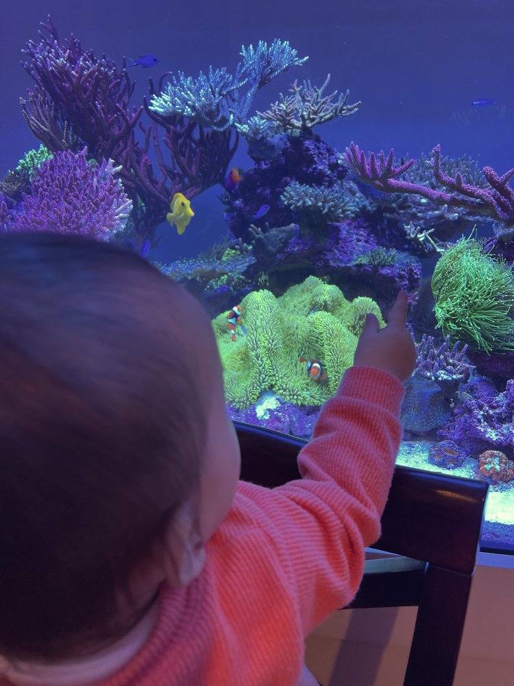 I haven’t really been doing anything to the tank since the second kid. The tank is just runs on its own. With my CWC set, all I’m doing is make RODI every month or so and salt water and feed the fish. Sometimes, I let the tank glass go and usually regret it when I have to scrape off the coralines.