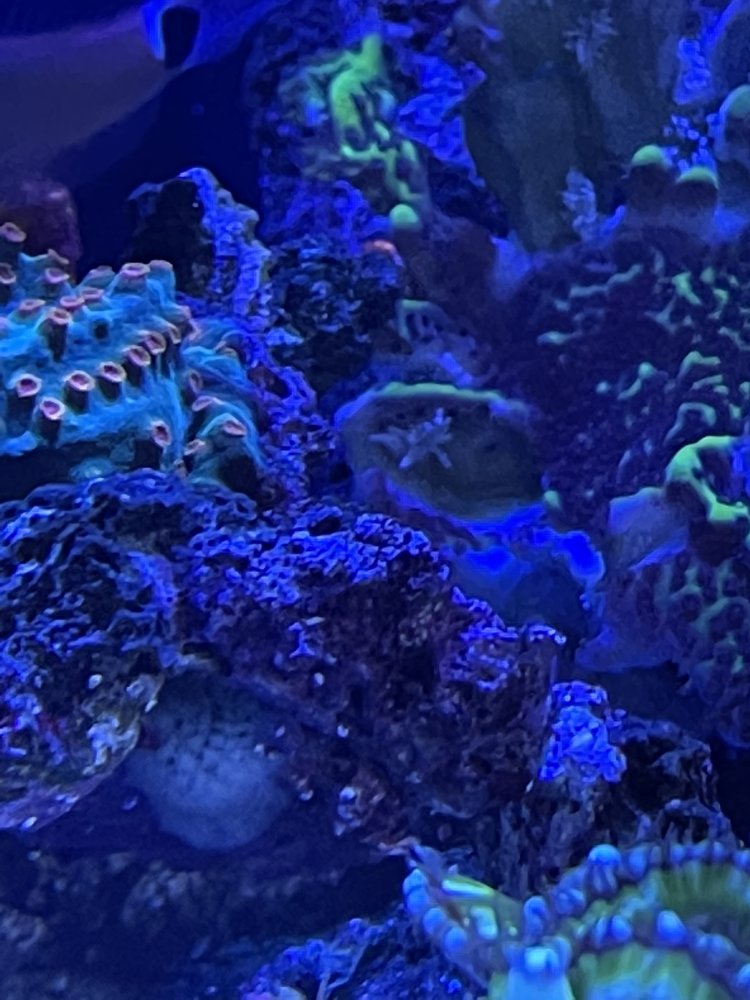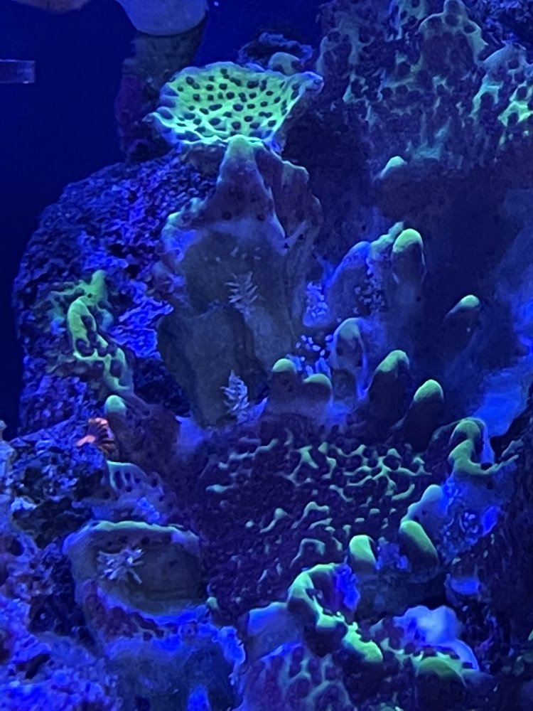 The pics might be bad since the monti is back in the tank. I moved a rock in front of this recently and thought the spongodes was bleaching because of the new light pattern. BUT, as I look today I think it's something more.
