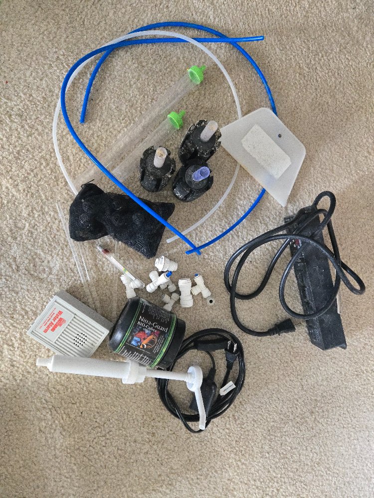 -2g acrylic tank - needs polishing. I started but scraped it good so will need some elbow grease to fix. No pump or plumbing. -dosing jug -dome light