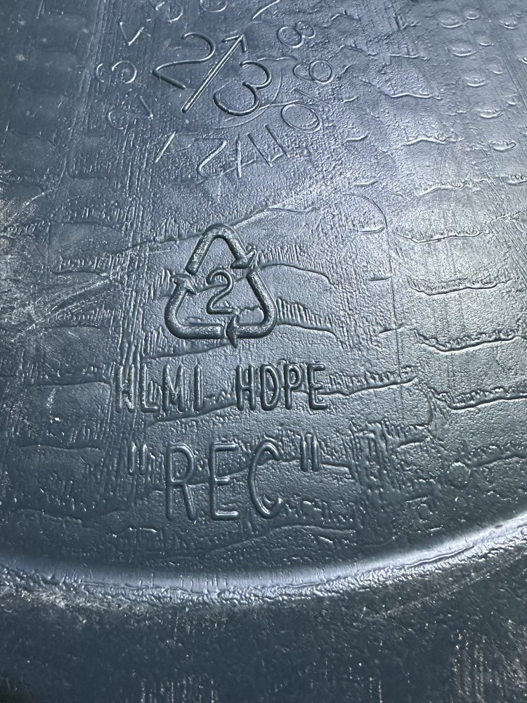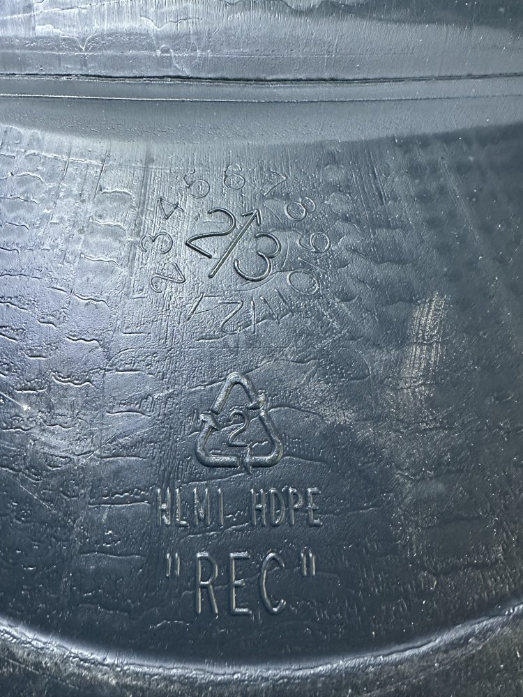 On another website - folks are saying the black barrels are composite plastics and the REC imprinted on the bottom means recycled - strong cautions against using the black ones - I may have to return these and just get 55 gallon brutes instead - better to know now than too late -