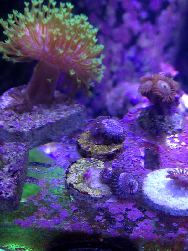 The sixth one is in the upper left corner and can barely be seen in the "open polyps" pic and it has moved down to the bottom of the frag disk.