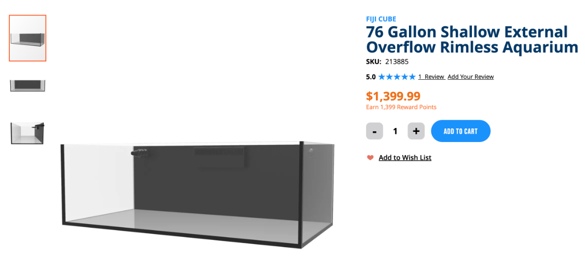 Selling Fiji Cube 76 Gallon Shallow EXT Rimless Tank (tank only). Great dimension (48Lx24Wx16H)