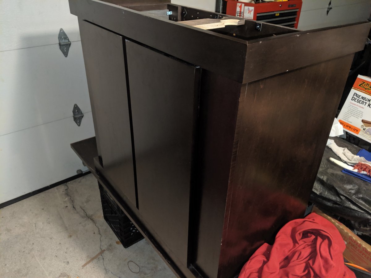 The frag stand is the typical lame wood one that comes with cheap tanks. I just painted it and put plywood on top. I have to raise it a bit though.