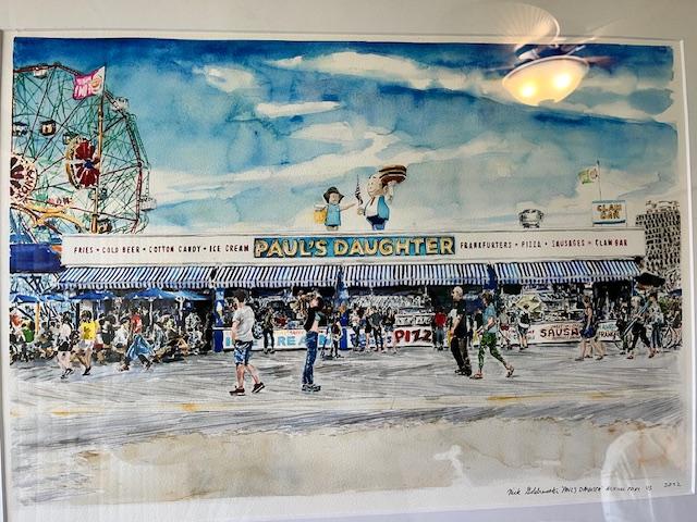 My Daughter bought me this painting from the Museum of Modern Art in Manhattan. It's from Coney Island and says Pauls Daughter. Actually there is a place on the Coney Island boardwalk named Pauls Daughter and this is a realistic painting of the place.
