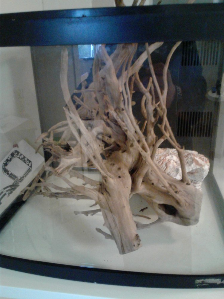I'm just curious about the origin what they're called I paid $30 for the piece of driftwood fit very nicely in my BioCube and I was a little reluctant to pay $15 for the Cave Rock because I just don't think it really works but I bought nonetheless I'm a fish saying junkie and I see something cool and I have to buy it and I'm like why did I buy it I'm going to do an open-top so I love the fact that the Driftwood sticks out of the top
