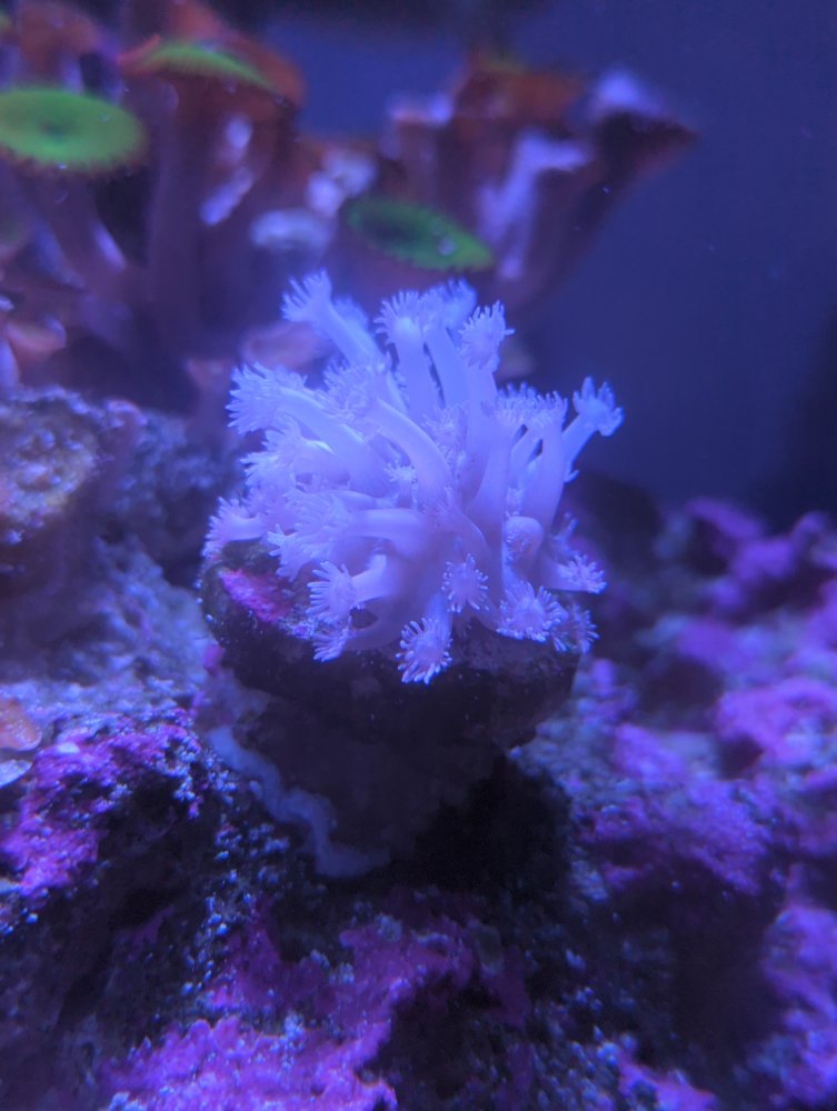 I have been having issues with this Goni for a while and it really has never taken off and it seems to have lost it's color. I have kept it pretty low in the tank. I just moved it to this spot and really no changes but it hasn't been more than a week or two. I attached some pics and my water chem. Some advice would be great.