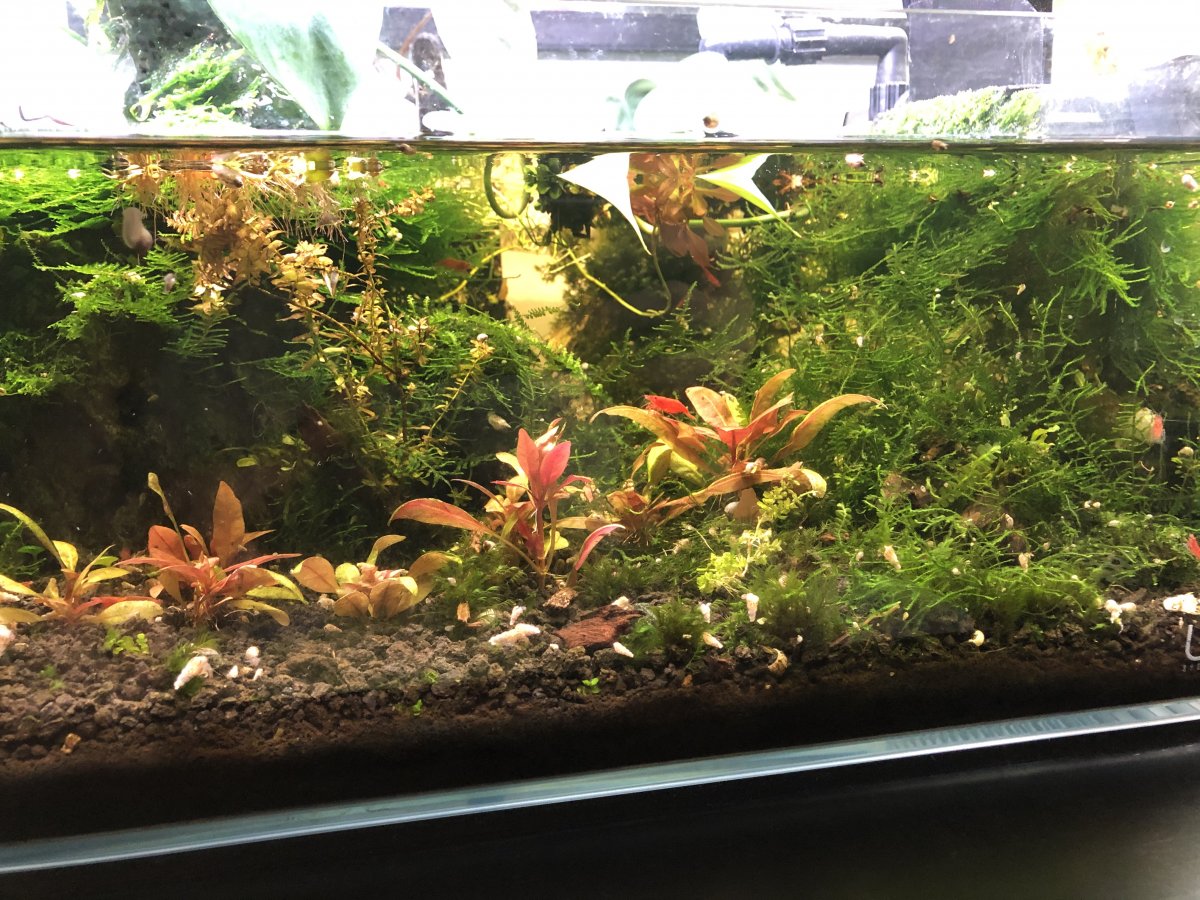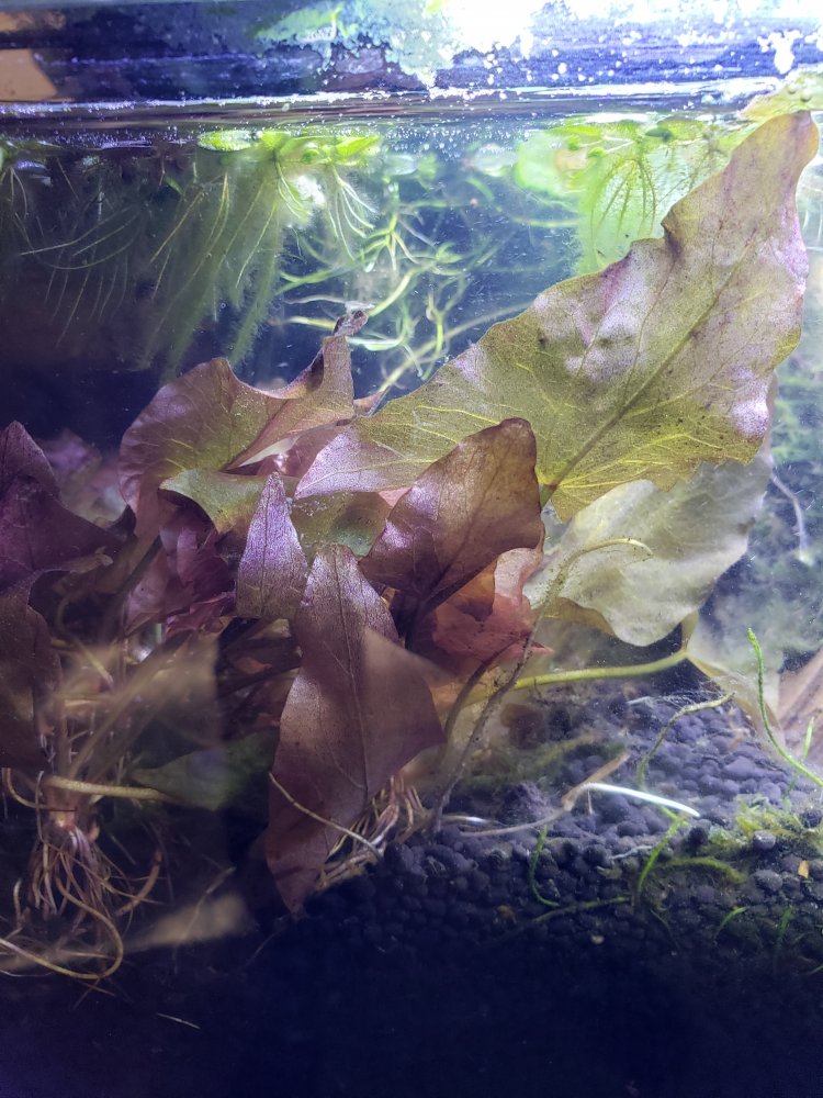 -Random small grass-like foreground plants and a large red leafed plant I have no idea the species of that I bought from European Aquatics in Malden and it has really started to become red over the past few weeks.