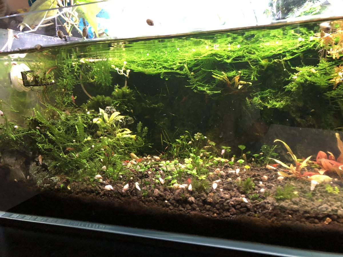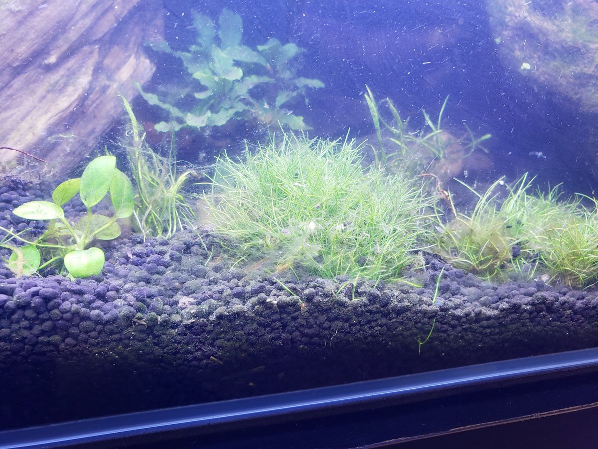 -I have a shallow section in the back left corner which I'll be adding more substrate to make it nearly a land section. This portion is already inhabited by a water celery but I think these plants would benefit from an even shallower environment. I eventually will plant some sort of grass here too.
