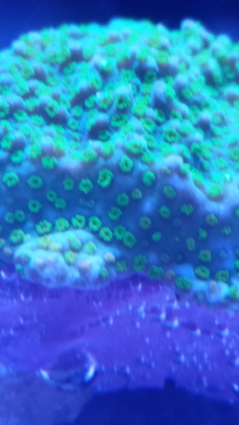 All pics are with white lights on This looks to me like a whitish milli with brown polyps This has a blue base with green polyps and the polyps are orange where there is new growth This is a dark brown with bright green polyps what monti cap is this Sent from my iPhone using Tapatalk