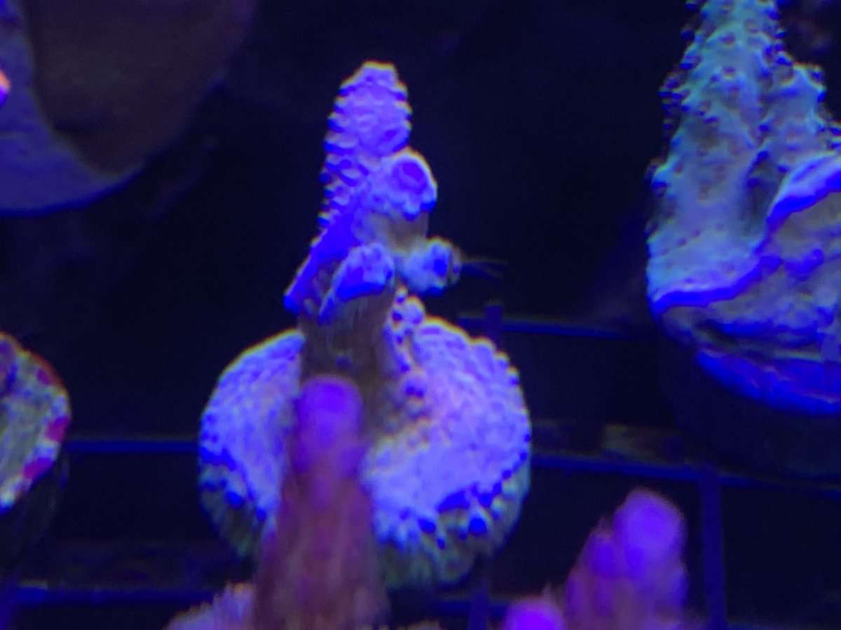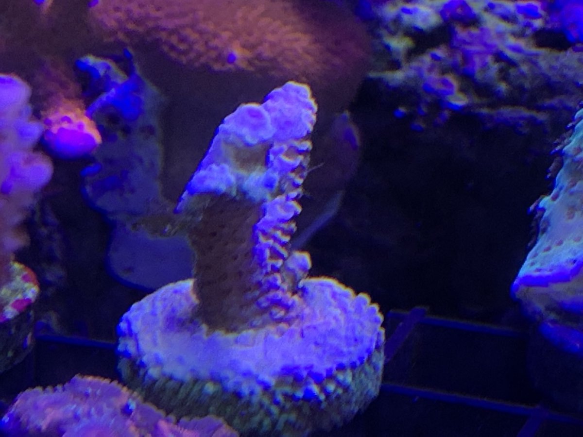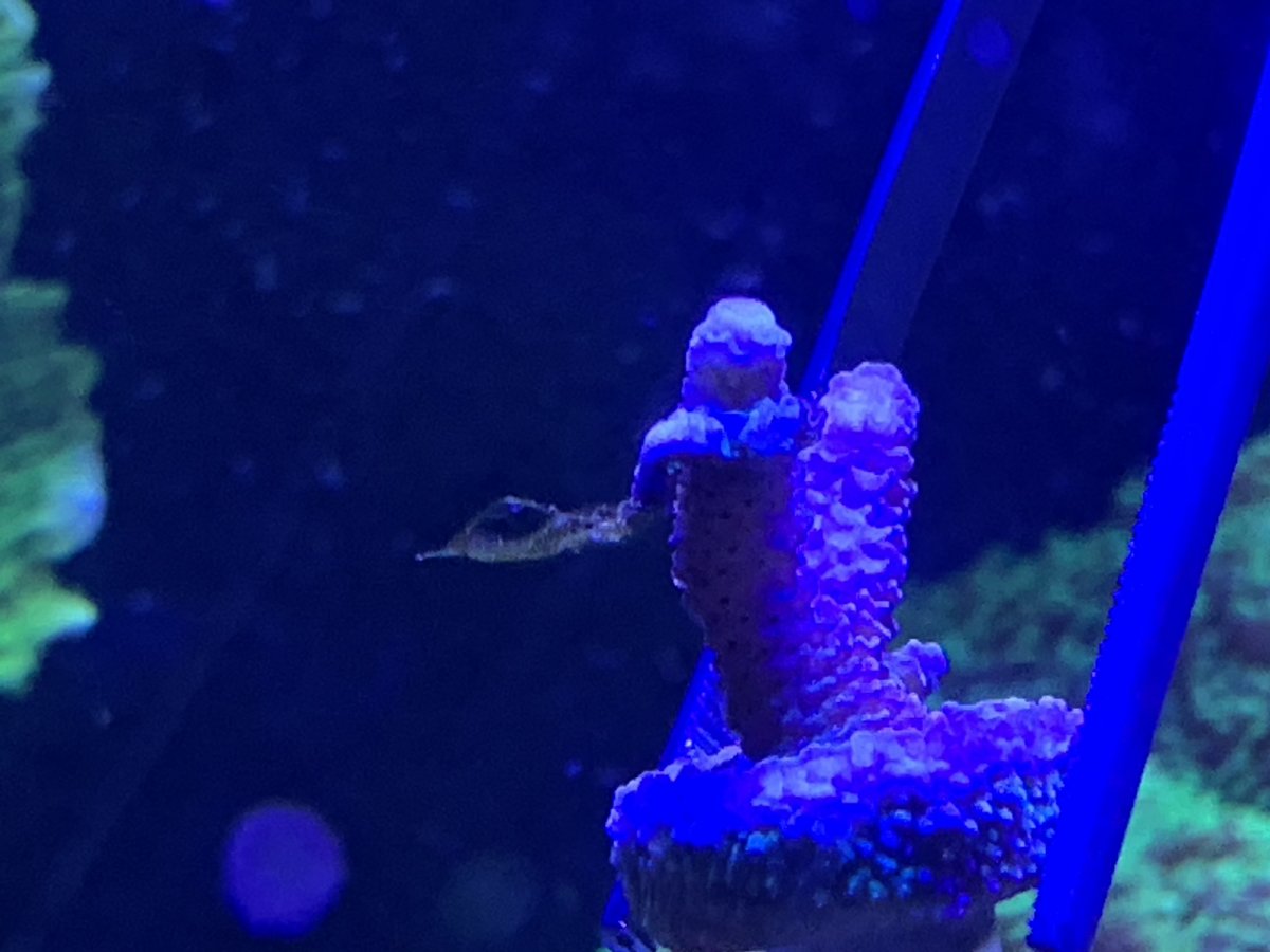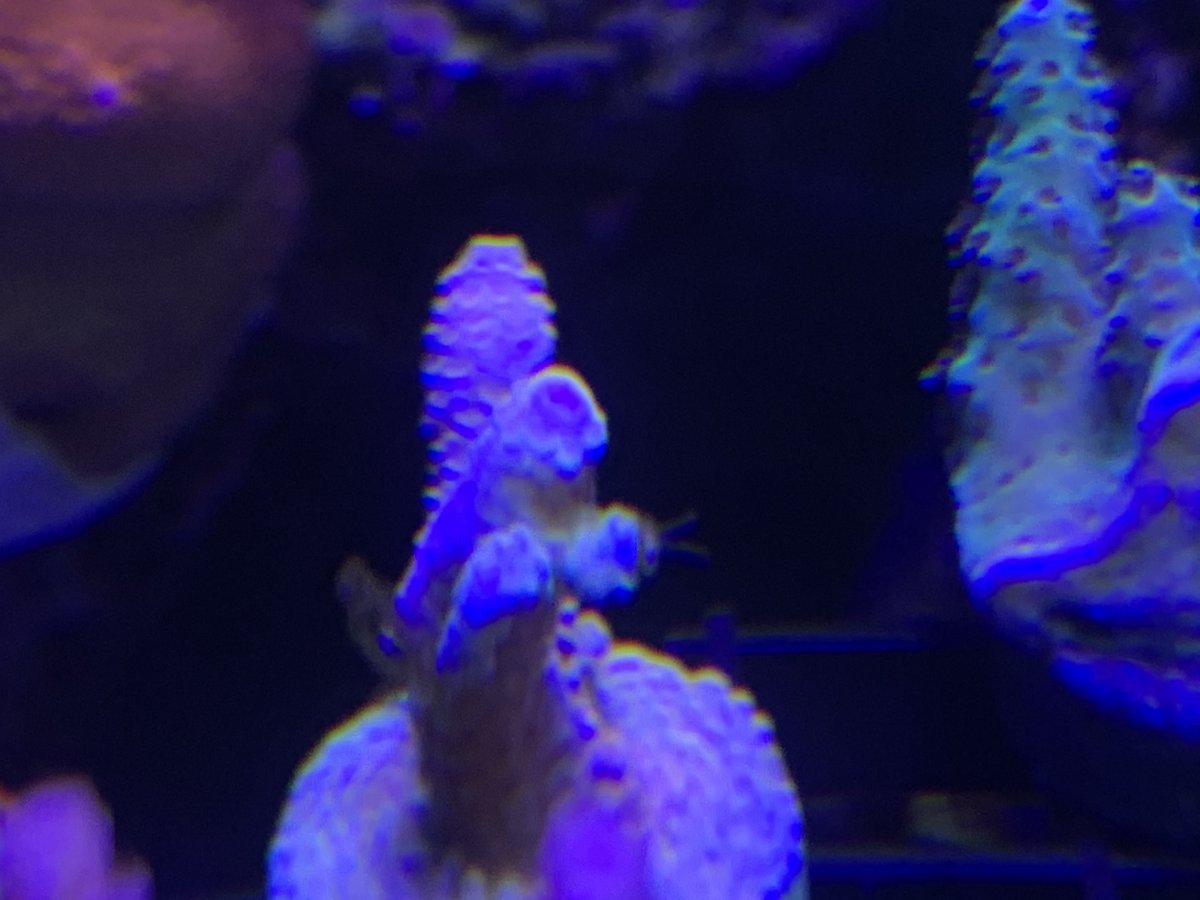 The past 3-4 months I have noticed what in thought was new growth on my rainbow milli. However it would randomly catch algae. No problem right a light cleaning with a quick blast of water and it was gone...only to show up again. So I would clean it again. Upon closer looking I see 2 antenna sticking out of the "new growth" area. Got the cutters out and began the trimming process. Then was what looked like something was boring into it skeleton Brownish in color. Managed to get it all out I hope.