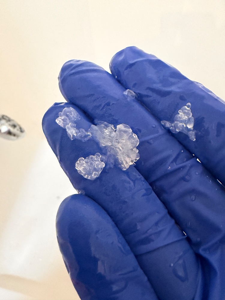 Took the rocks out of the bleach solution today to find what looked like clear, very plump, poppable bubble algae on the rocks.