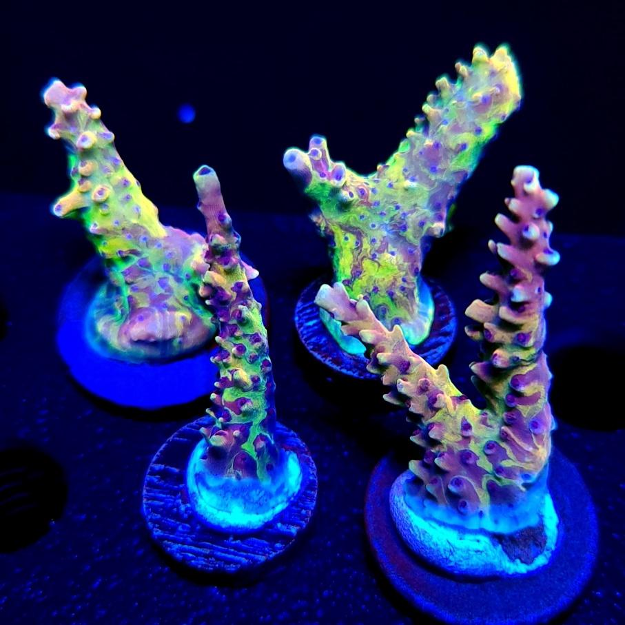 Is the first pic the Nerds acro?One of mine would be an Amazeballs goni. However I cannot seem to keep them alive. Some SPS would be a nice SCOP, ( I just purchased a good sized frag) maybe a Vivid insanity. There is also a few different grafted SPS that are ridiculous. There are also about 5 nice smooth skin acros on my list!