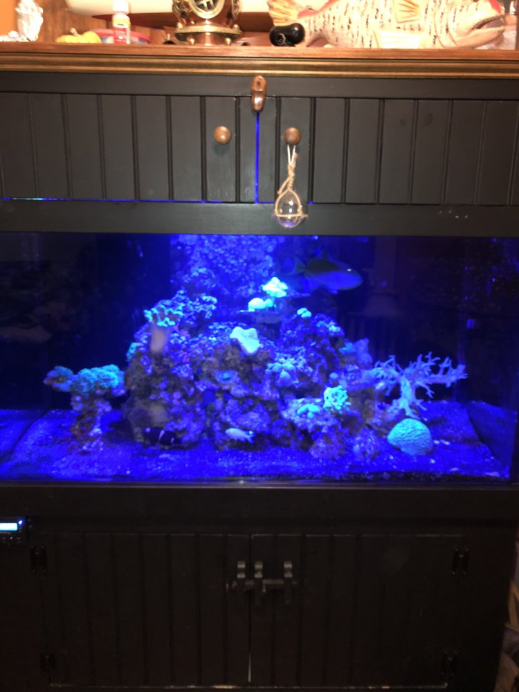 hi all my question is I have a oceanic 120 tech tank. I’m running one radion g2 in the center witch is where 90% of my corals are. Now I have a green encrusting coral mounted rather high in the tank which is doing fantastic and spreading really good I also have a couple of frog Spons in different locations which are also doing quite well my question is it does not seem like anything is growing much they look great but not getting any bigger. I have a few leather coral that just do not seem to get any bigger or any new sprouts on them. I try to keep my calcium magnesium and alkalinity in check I’m not really big on water changes but I also only have about eight fish in the entire tank I’m running a eshpps protein skimmer and charcoal in a reactor with some filter pads that’s about all for the filter. My one light is about 9 inches off the waterline I was just wondering if the tank really needs more light. Please let me know what you all think