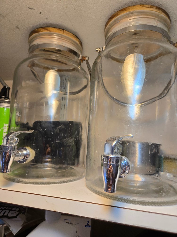 1.5 gal jugs used for phytoplankton wood lids messed up but i put sandwich bags over top and rubber band. Free two available