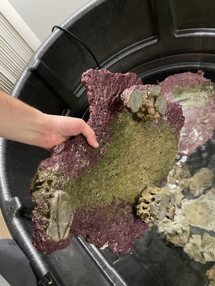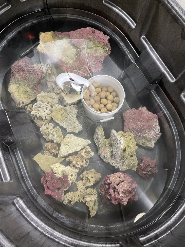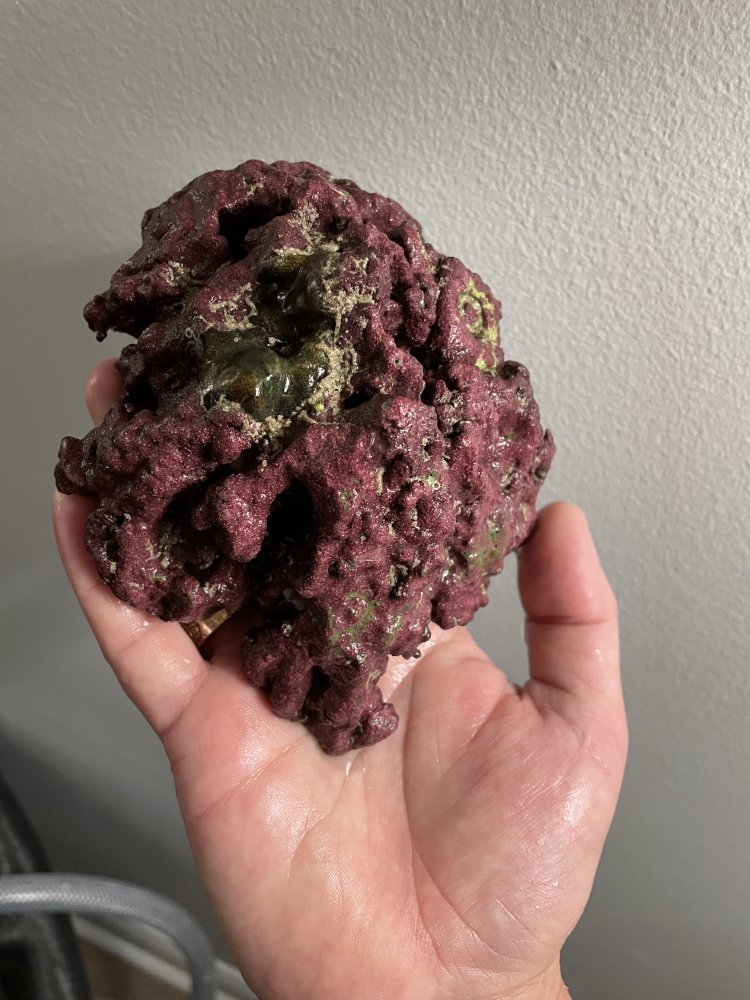 This rock has 5 bubble tip anemones of 2 genetic lineages. It is a pukani rock covered on coralline algae. It is probably 16 inches tall, 12 inches in diameter. Will need something a little larger than a 5 gallon bucket to transport.