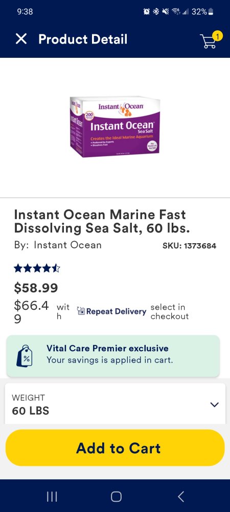 Went to go buy salt online (IO Reef Crystals) only to find out the price jumped from $44 to $70 for a 5 gal bucket!!