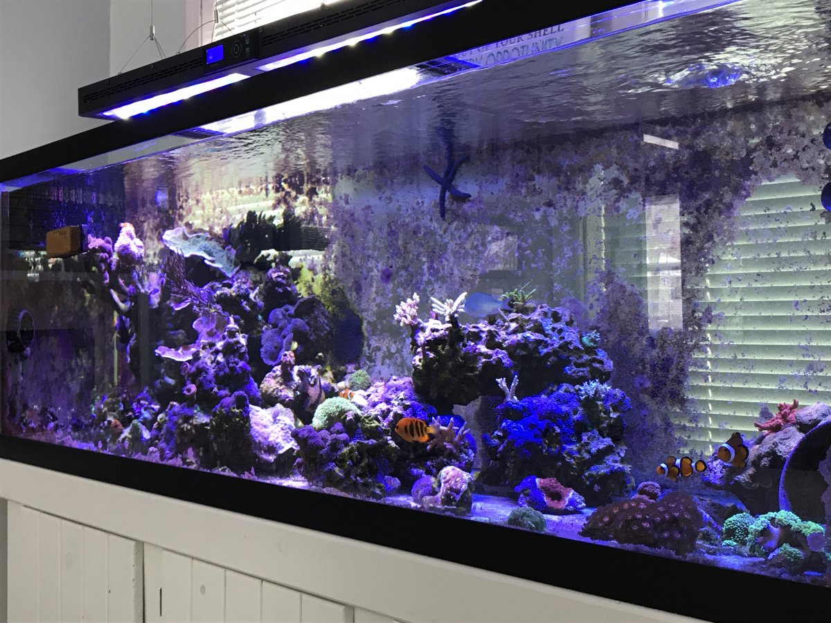 Main display lighting. 2 retro t5 and old reefbreeder photon lights.