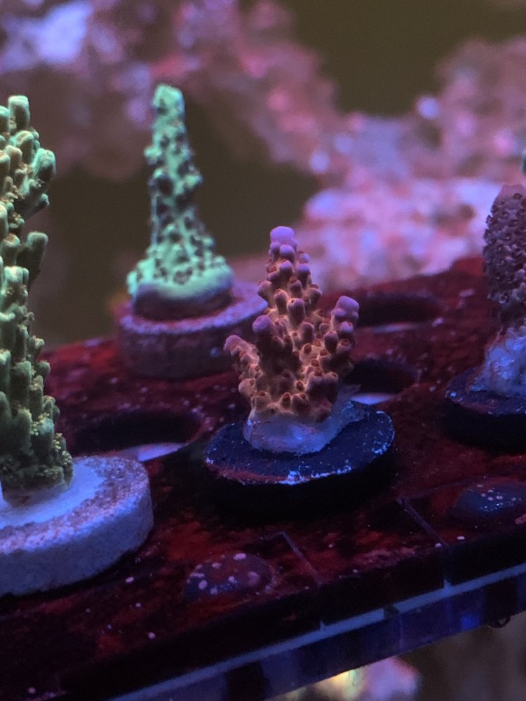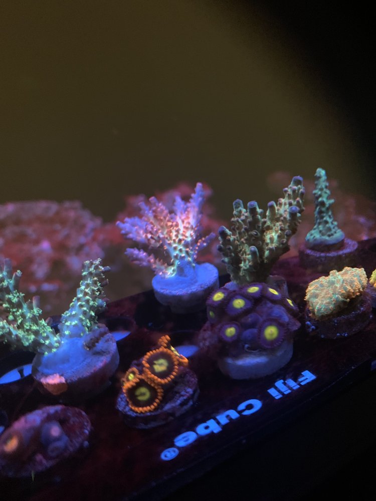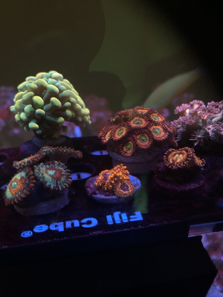 About a month into the lights being on, I got Dinos. I am not sure if they came in on a snail or something. I did not buy a microscope to positively identify, however they were not the ones that float freely in the water column and disappear at night. I also bought a few frags at Reefapalooza. I wanted to wait much longer, but I could not help myself. So the Dino’s may have came in from adding the frags. Other than being ugly and terrible to look at the tank was fine. I did a few things to fight the Dino’s. I completely removed all white light and turned my blue channels down to 40%. I could not go blackout as I did not want to stress the few frags I got. (Mostly Zoas, and a couple LPS). I also don’t believe that blackouts is the key. They certainly help, but I wasn’t going to do one. I also was not going to try hydrogen peroxide or flucanozole. My nutrients were also extremely low. I haven’t yet turned on the skimmer so shutting that down wasn’t an issue. I gradually raised my nitrate from undetectable to about 12. I do believe there was nitrate present in the tank, however I think the algea/Dino’s were consuming it immediately. I wanted to wait before trying to mess with raising phosphate. As soon as o got the nitrate to around 10, the corals looked much happier. I did not increase feeding as I already feed heavy. The other thing that I did was blow off the Dino’s every other day and also change filter socks at the same time. And I started dosing microbacter7. Over the first two weeks nothing changed. However the last two weeks, so a month into this routine I started noticing them slowly declining. Like I said I was not worried about then as the tank needs to mature. I also added some pods. I added some when I initially stated the tank and added plenty more. Now I believe I have turned a corner regarding the Dino’s and I am waiting for another nuisance thing to poo up. Most likely cyano. Many people have it happen after Dino’s. I do notice some small patches on the sand bed that weren’t there during the Dino’s. I will take that battle slowly as well and do not want to add any “quick fixes”. Just wait it out.