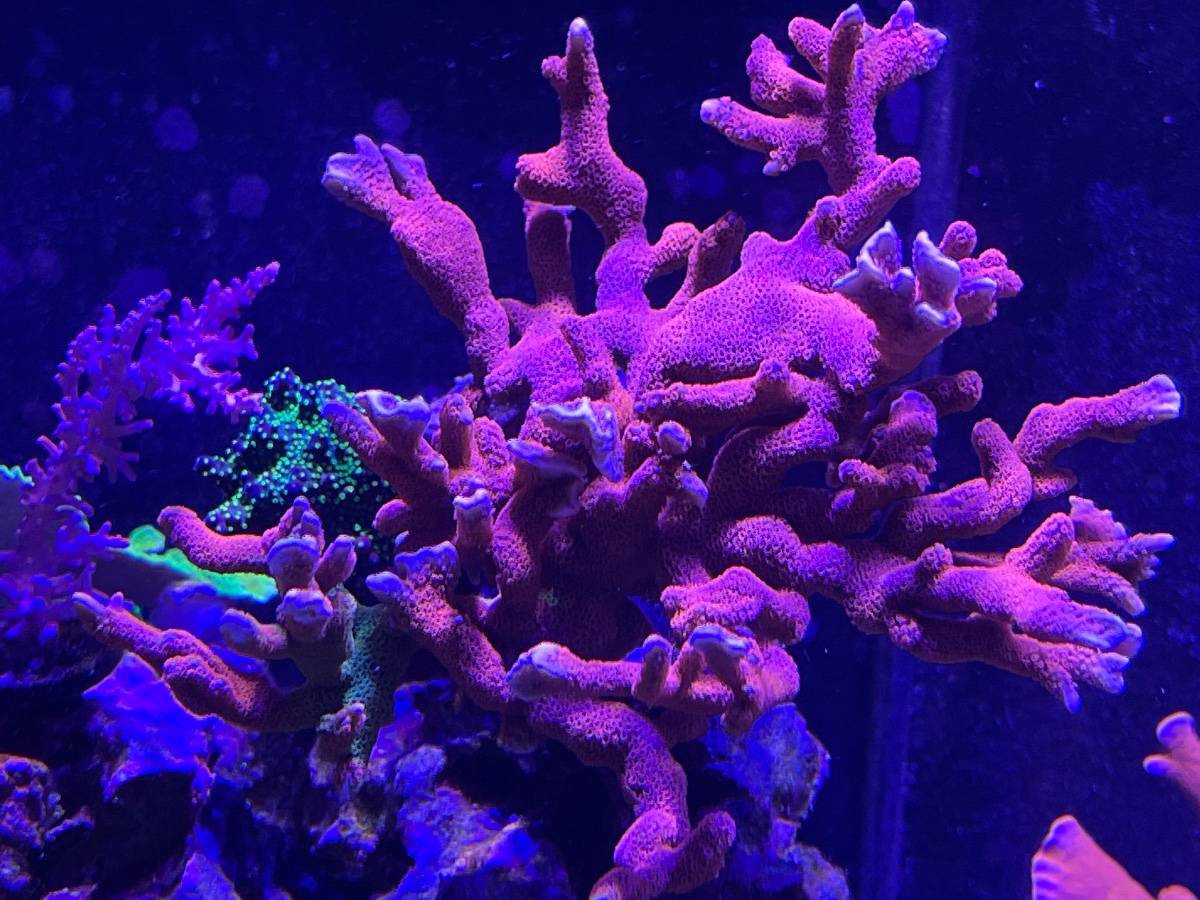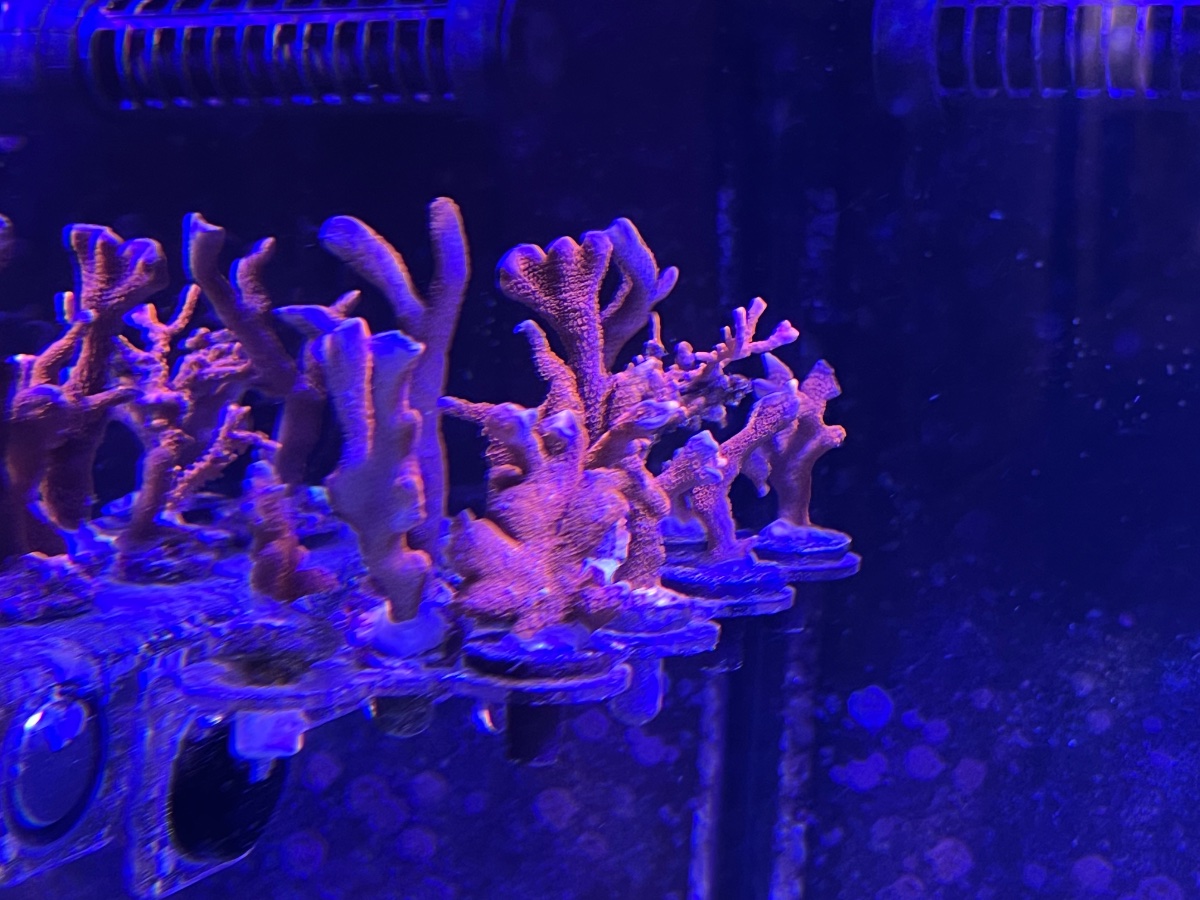Hi there, have a bunch of red digi SPS, the momma is actually grafted with mix of green and red, but these frags dont have them yet. Fast grower, started as 1/2”, now roughly 8-10” diameter.