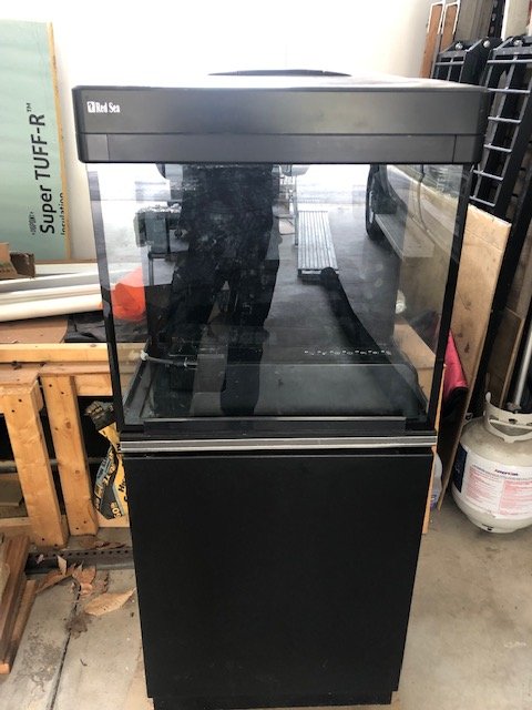 This tank is in very good condition. It could use one more cleaning before setting it up though. All of the parts are in the box that comes with it (pump, skimmer, trim around bottom of glass, etc.). Of the 4 or 5 AIO's I've always been happiest with the Red Sea ones. I can take more/better pictures if needed.