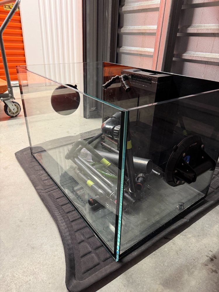 Tank is clean and in great shape. I see no visible scratches. Comes with all plumbing just no stand.